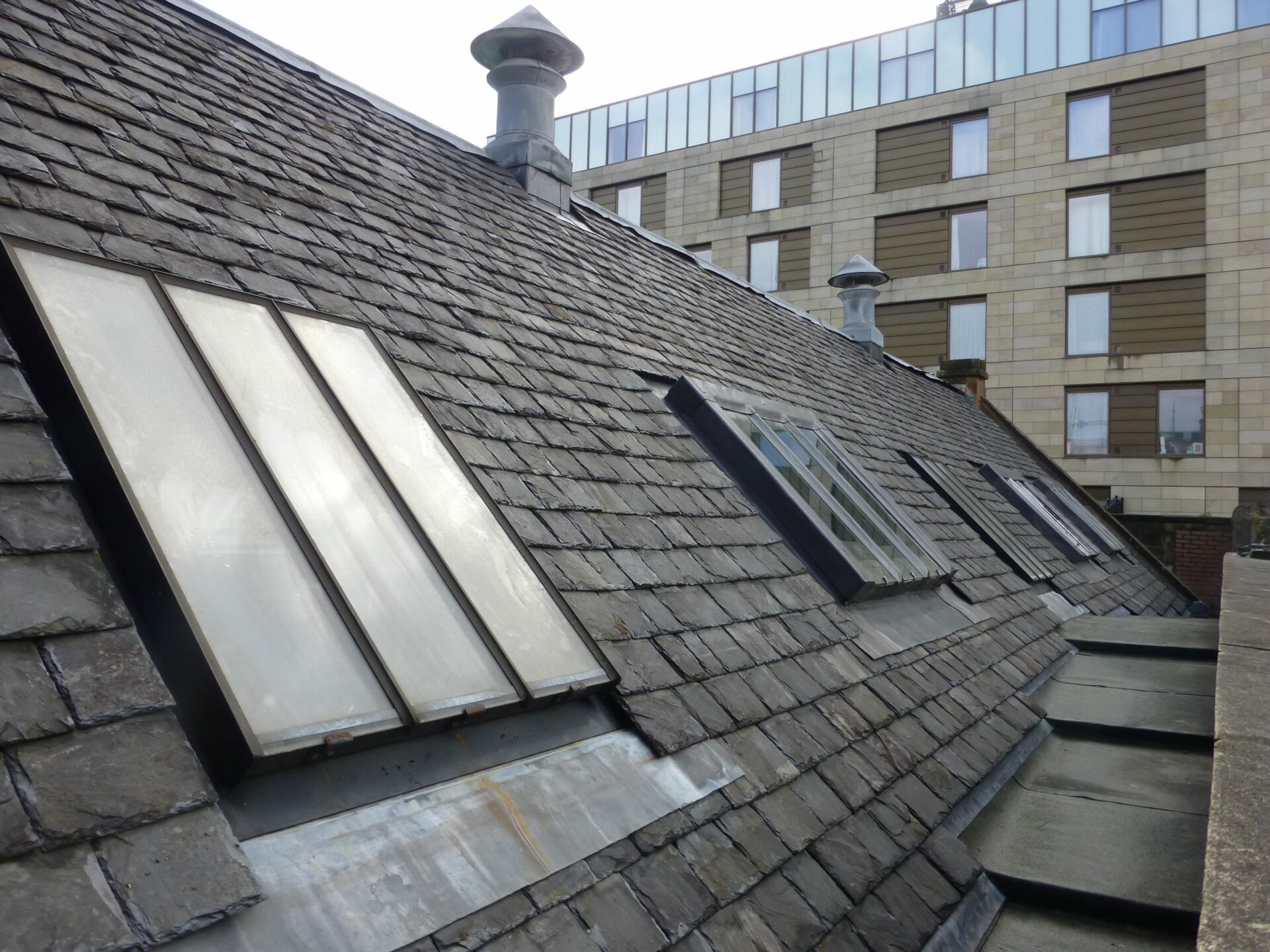 The entire roof has been stripped and re-slated, and the rooflights given new flashings. The original vents were able to be retained.