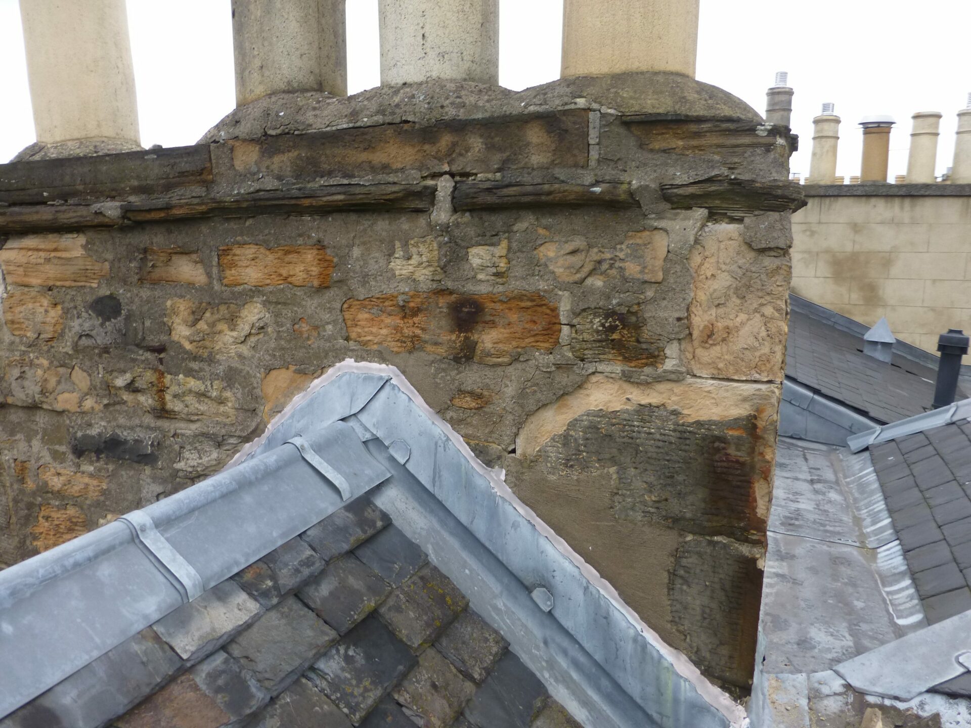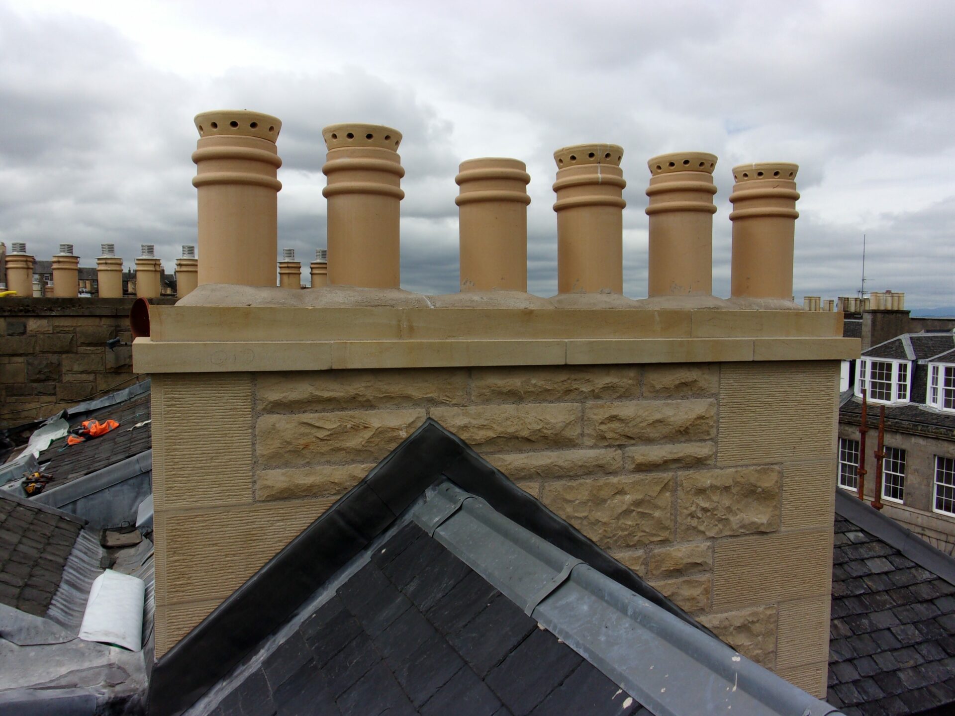 The chimney between 49 and 51 Albany Street was rebuilt with new stone, as the original stonework was deteriorating and at risk of future collapse.